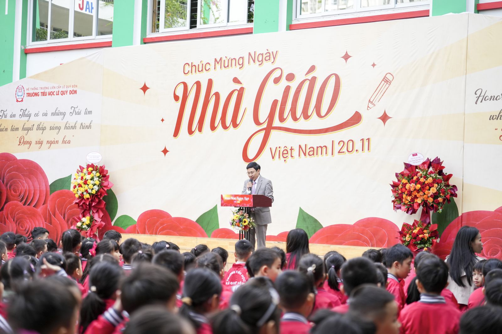 Thầy nhấn mạnh rằng dịp 20/11 năm nay càng thêm đặc biệt khi Trường Tiểu học Lê Quý Đôn đang bước vào cột mốc 20 năm hình thành và phát triển. Từ một ngôi trường còn non trẻ, Lê Quý Đôn hôm nay đã trở thành một cây đại thụ trong cộng đồng giáo dục Thủ đô, là địa chỉ tin cậy của hàng nghìn phụ huynh và là nơi khởi đầu đầy tự hào của biết bao thế hệ học sinh.