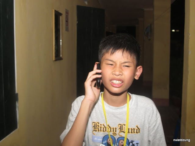 Cả một ngày sôi nổi mệt nhoài, 10 lời thề và 12 điều kỷ luật trong quân đội được các bạn í tiếp thu khá là hờ hững, nhưng vì chuẩn bị được bơi lội nên cũng không dám uể oải vì sợ phạt không được bơi nữa. Các bạn í háo hức với lễ hội đập gối lắm lắm í. Gọi điện cho bố mẹ mà chỉ trực tắt điện thoại để đi đập gối, chưa đến giờ đã ôm gối ra khỏi phòng đi đi lại lại… yêu thế chứ các chiến binh nhí 2013. Màn gọi điện phải nói là xúc động ghê nơi… Có khoảng chục bạn là nhất định không chịu gọi về vì kêu con không có gì để nói đâu, chỉ khoảng 5, 6 bạn khóc mếu là Minh Quân, Quốc Cường và thêm 1 bạn tiểu đội 4… Chào mẹ rất to, nước mắt rơi rất nhiều, mắt đỏ hoe nhưng vẫn cứng rắn vô cùng nói con vui lắm ạ, con khỏe, con không có vấn đề gì. Mẹ Loan đứng cạnh mà cũng thấy thương ơi là thương. Mấy bạn nữ thì có bạn Huyền Cơ tối qua khóc nhớ mẹ, nhưng hôm nay gọi điện về không khóc tý nào lại còn cười nữa chứ… Nhật ký của bạn ấy như sau: Ngày 1 buồn, nhớ mẹ quá. Ngày 2: Vui, nhớ mẹ quá… Thế thôi, đơn giản nhỉ? Nhưng cũng xúc tích đấy chứ.