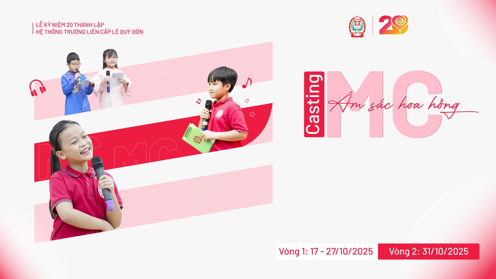 Nhằm tìm kiếm và bồi dưỡng những gương mặt dẫn chương trình tài năng cho Lễ kỷ niệm 20 năm thành lập Hệ thống trường liên cấp Lê Quý Đôn và Đại nhạc hội “Nghe hoa hồng kể chuyện”, đồng thời tạo cơ hội cho học sinh thể hiện khả năng nói trước đám đông trên sân khấu lớn, Nhà trường phát động Casting MC “Âm sắc hoa hồng” theo kế hoạch cụ thể như sau: