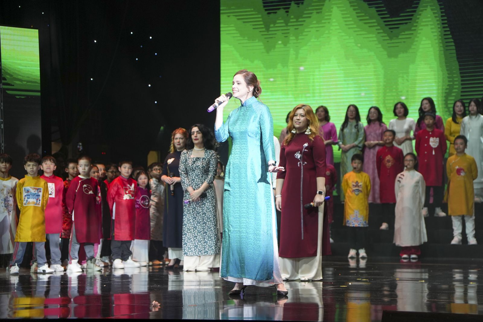 Giữa không gian trang trọng của một chương trình nghệ thuật học đường, khoảnh khắc các giáo viên nước ngoài cùng cất lên làn điệu dân ca Việt Nam đã khiến nhiều khán giả bất ngờ và xúc động.
