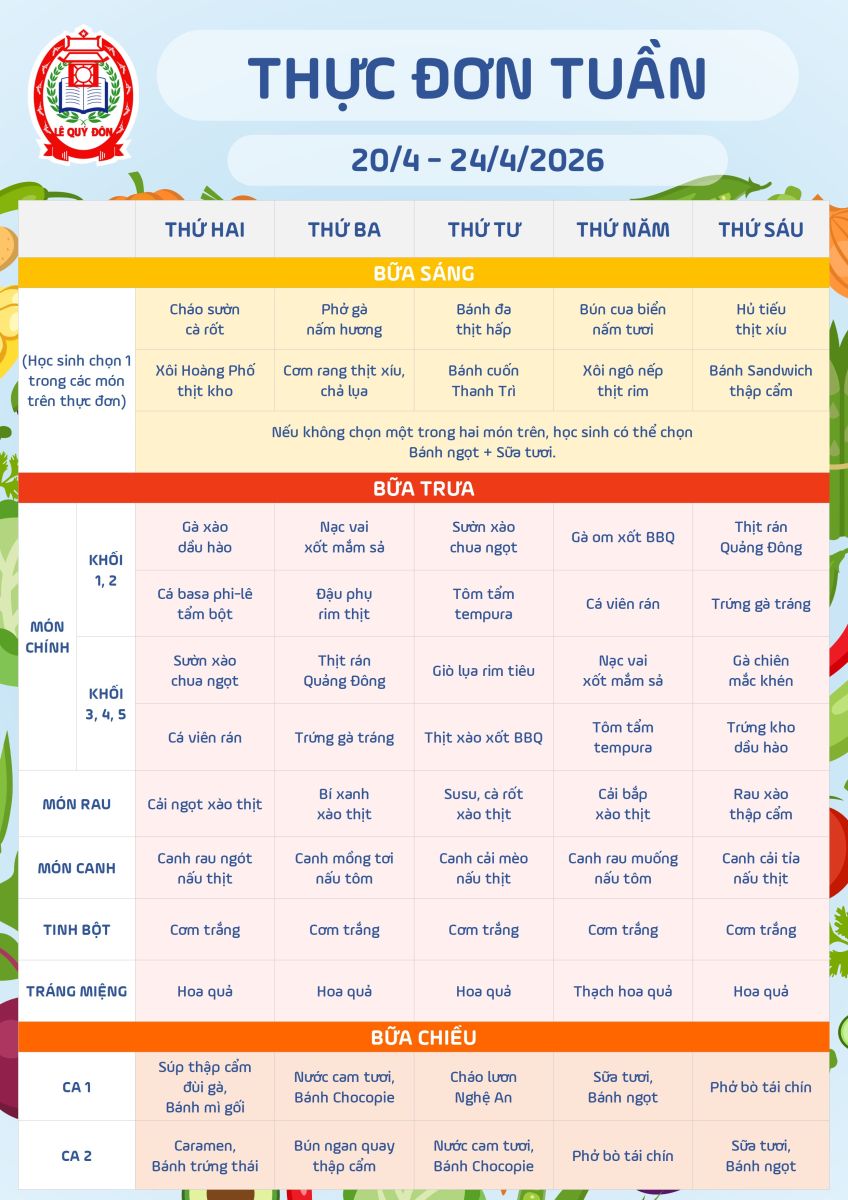 Thực đơn CLB Ngôi nhà mơ ước 11/4/2026
