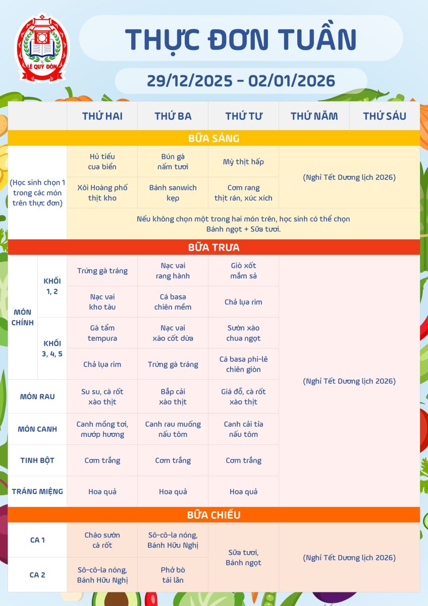 Thực đơn CLB Ngôi nhà mơ ước 27/12/2025