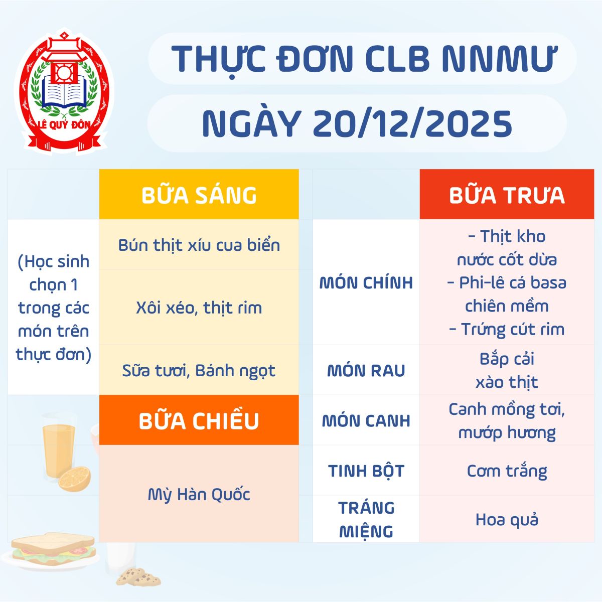 Thực đơn CLB Ngôi nhà mơ ước 20/12/2025