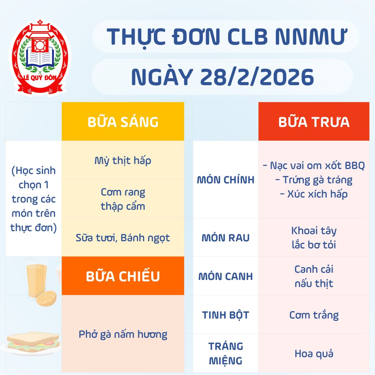 Thực đơn CLB Ngôi nhà mơ ước 28/2/2026