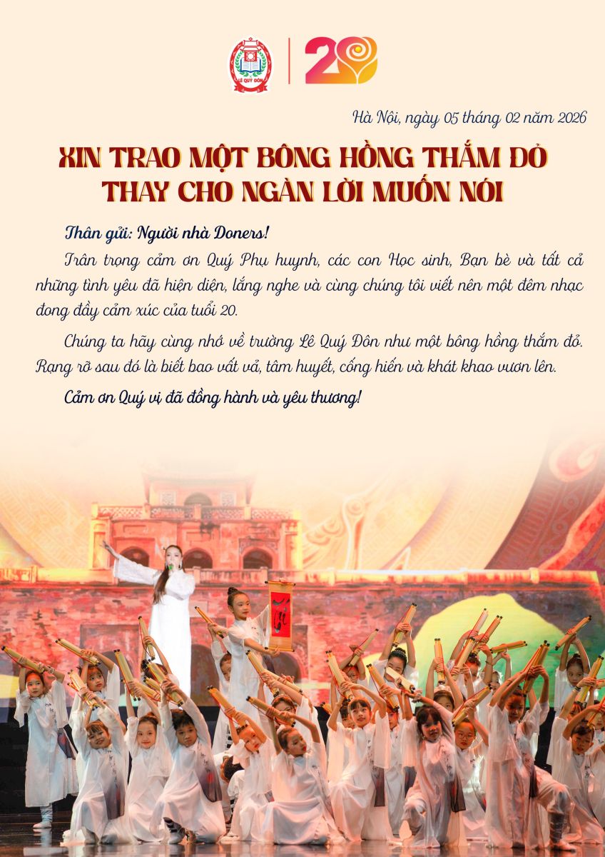 Lời cảm ơn của Ban tổ chức Chương trình kỷ niệm 20 năm thành lập Hệ thống Trường liên cấp Lê Quý Đôn